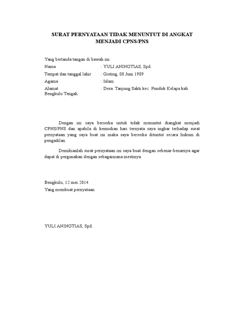 Contoh surat pernyataan cpns 2019. Dengan ini menyampaikan surat lamaran untuk dapat menjadi calon pegawai negeri sipil di lingkungan. Dimana pendaftaran seleksi cpns 2019 dibuka bulan oktober tahun ini setelah presiden dilantik. Tidak kalah penting yaitu membuat surat pernyataan. Silahkan simak terus situs ini karena disini saya akan mengupdate segala informasi terkait penerimaan cpns tahun 2018.